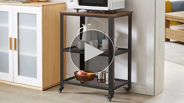 Amazon Com Ymyny Serving Cart Vintage Kitchen Bar Cart On Wheels 3 Tier Microwave Heavy Duty Storage Shelves Baker S Rack With Metal Frame Extra Counter Space Easy To Assemble Rustic Brown Uhtmj011h